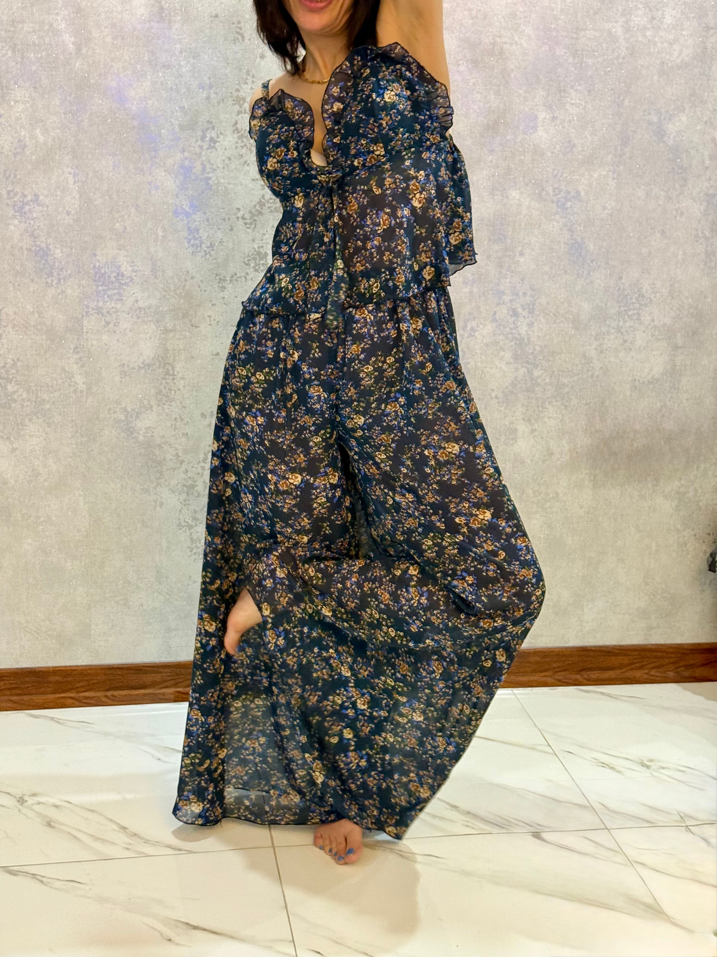 ست پنت اسکرت گلدار سرمه ای